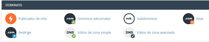 2º Busca la sección Dominios
